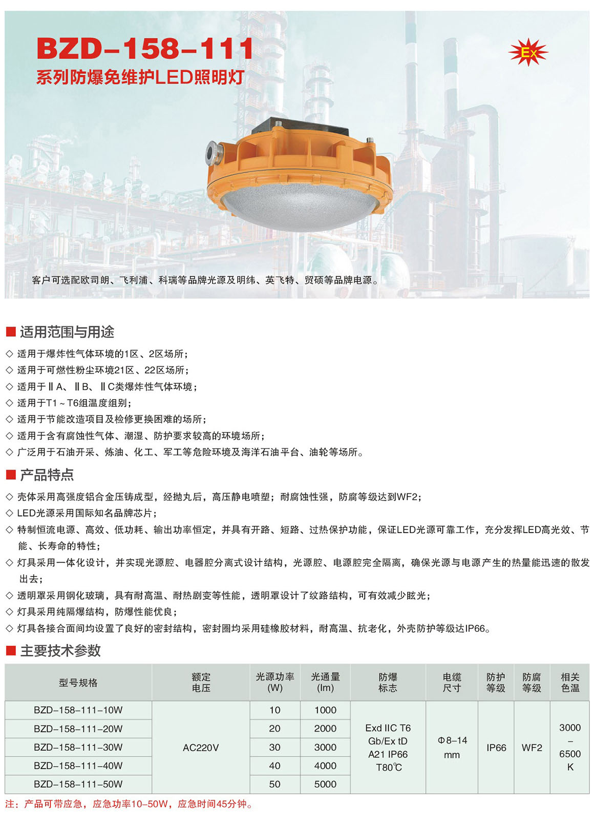 BZD-158-111系列防爆免维护LED照明灯(ⅡC)