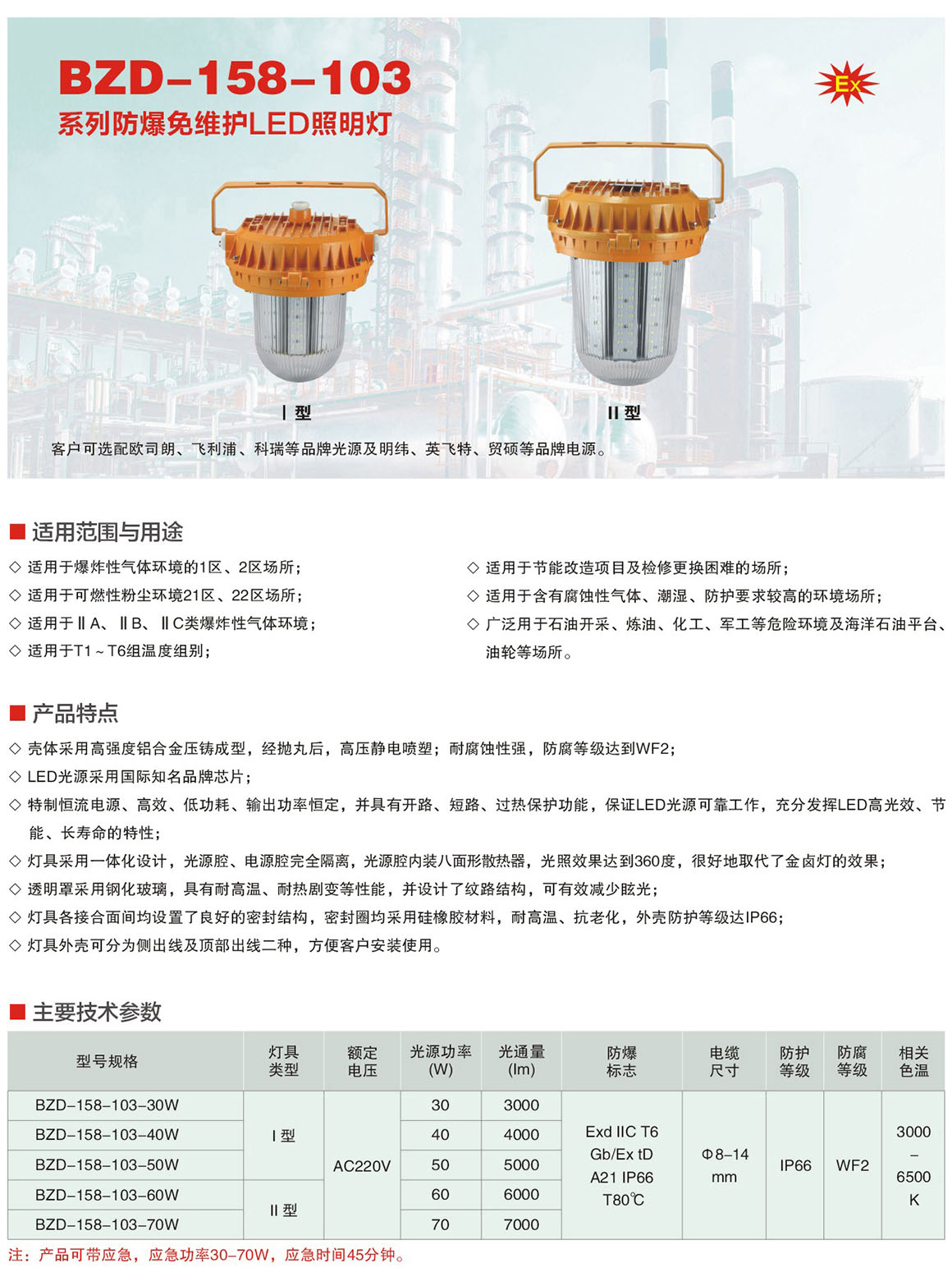 BZD-158-103系列防爆免维护LED照明灯(ⅡC)