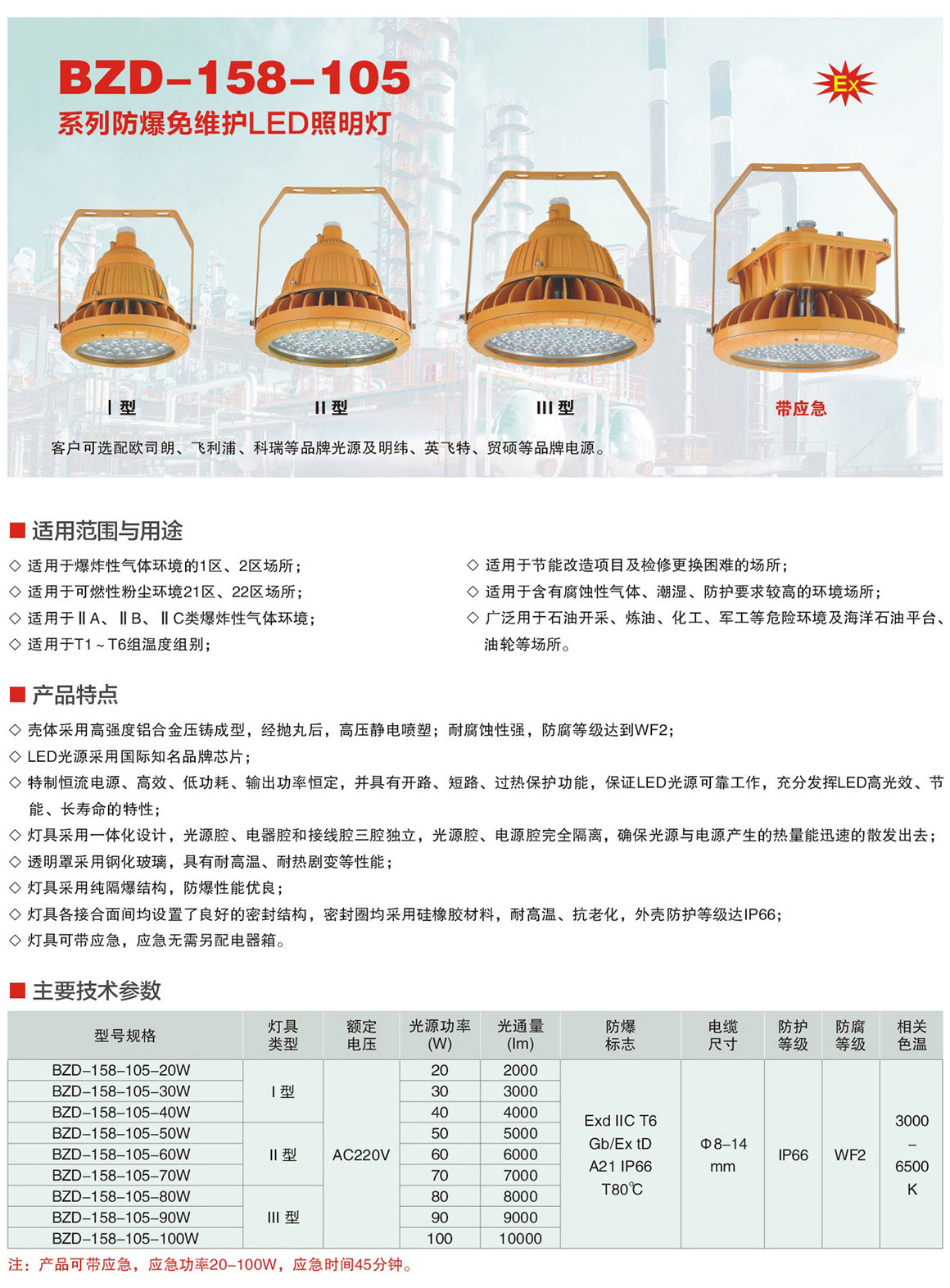 BZD-158-105系列防爆免维护LED照明灯(ⅡC)