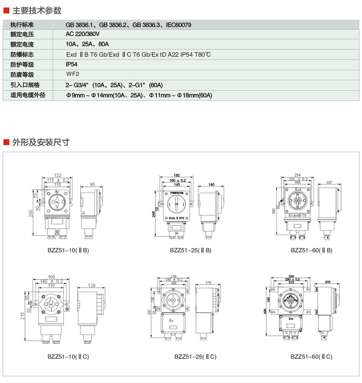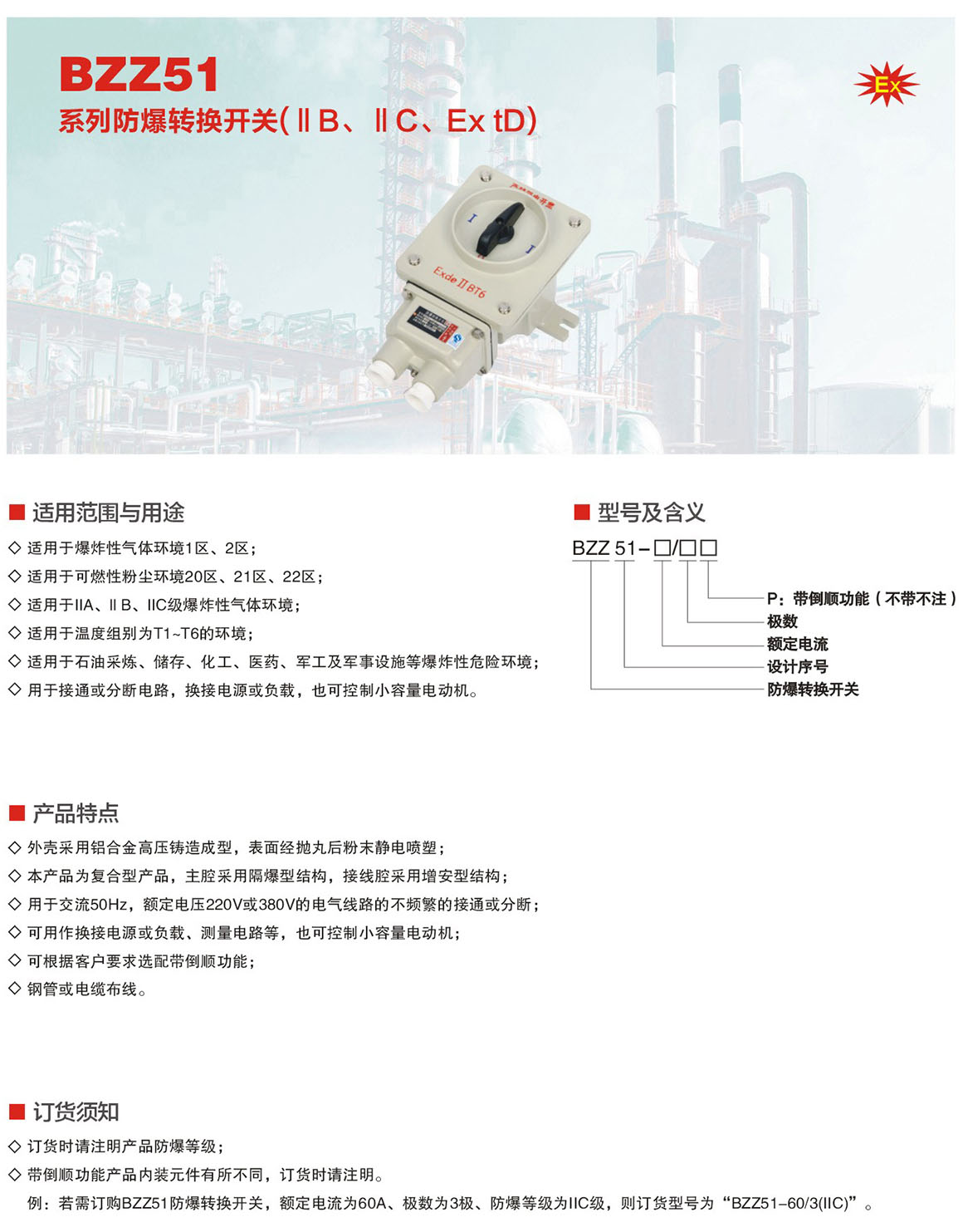 BZZ51系列防爆转换开关(ⅡB、ⅡC、Ex tD)