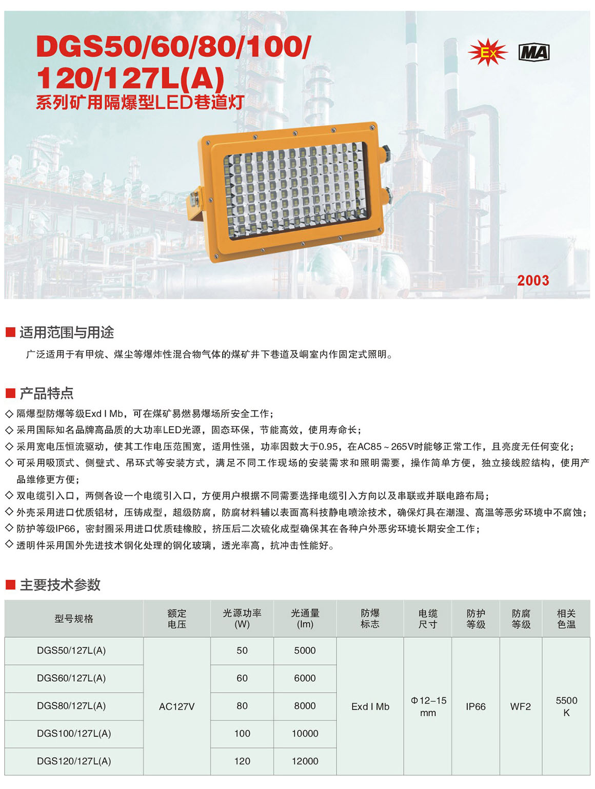 DGS100系列矿用隔爆型LED巷道灯