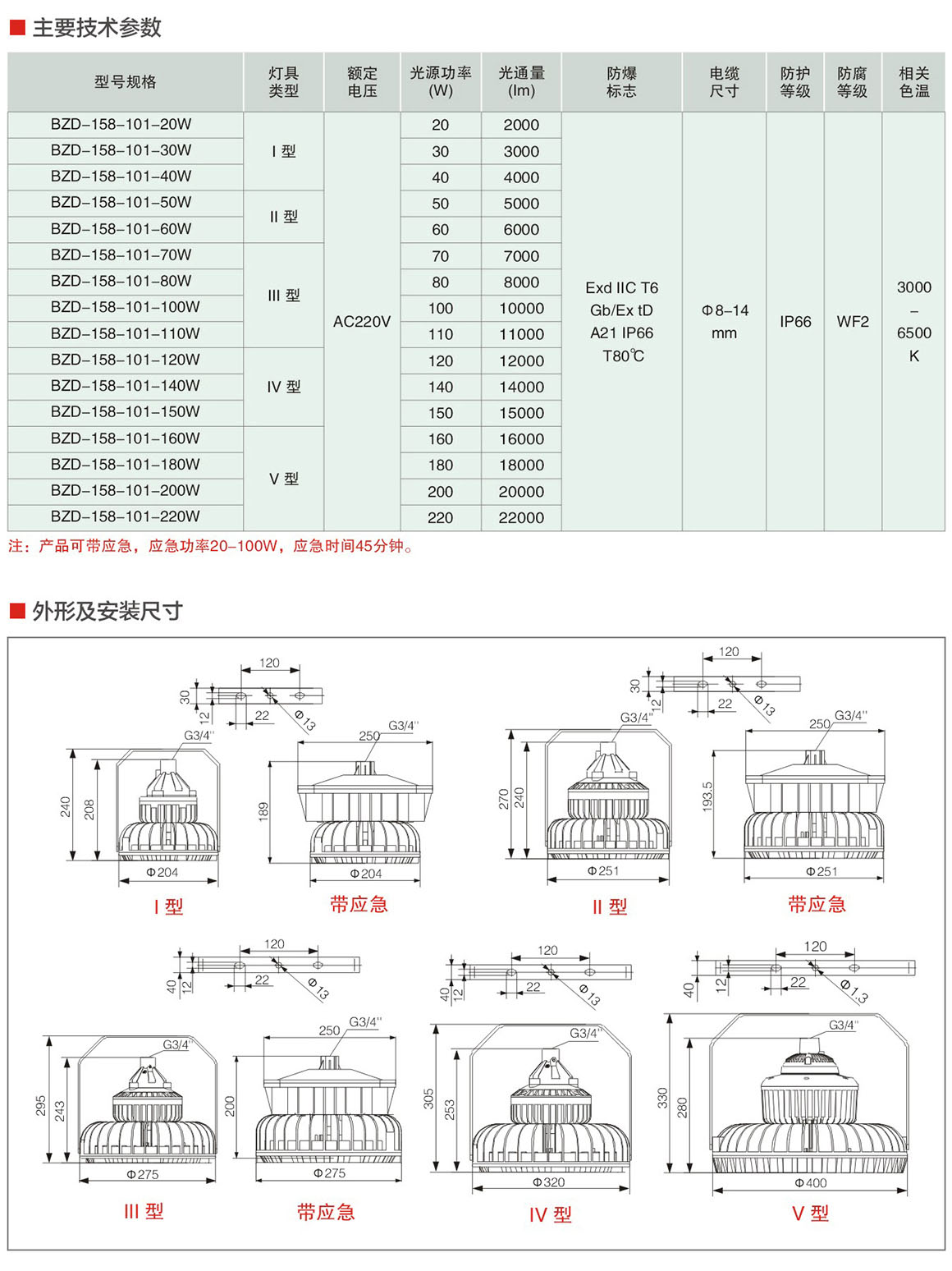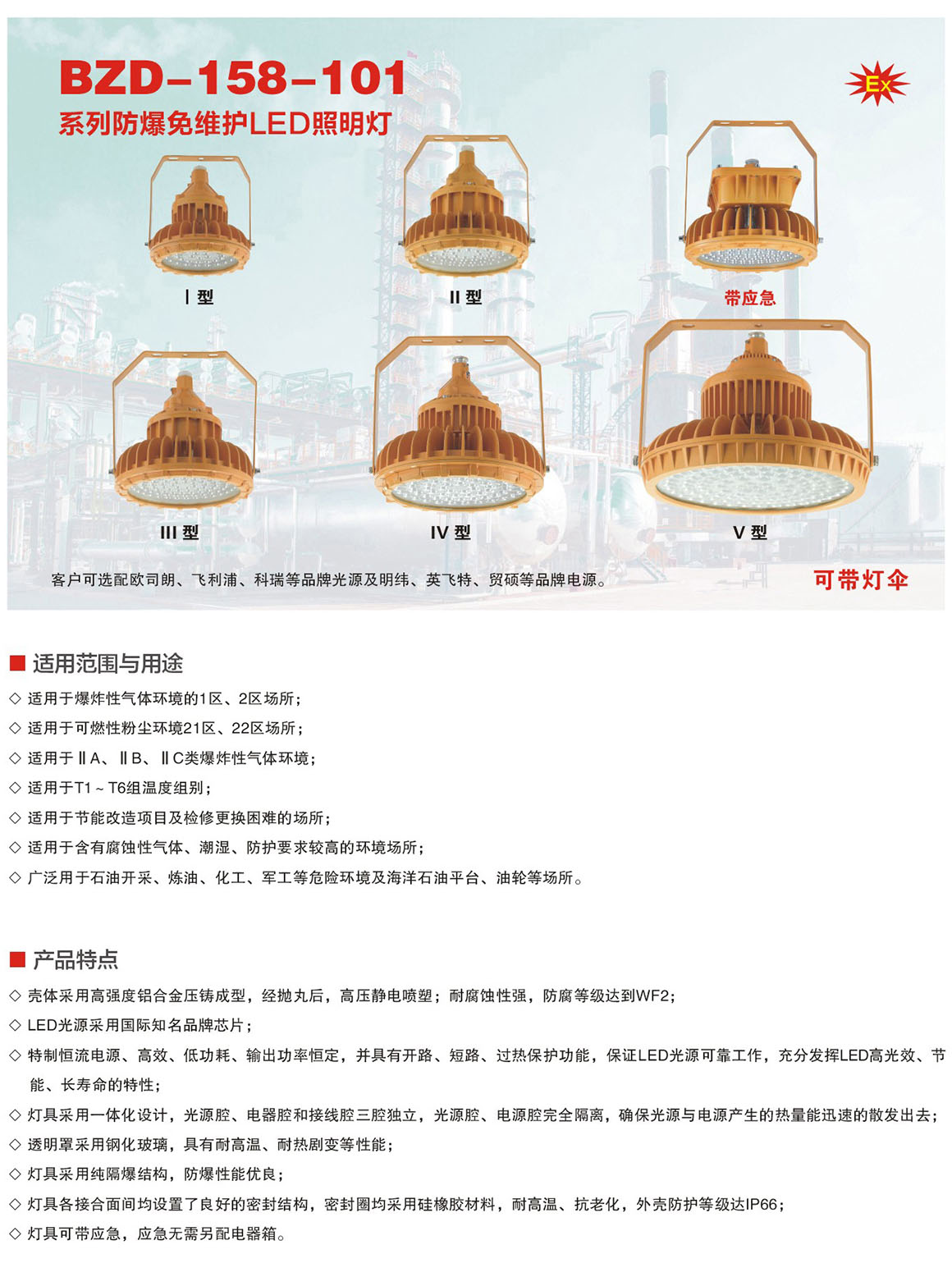 BZD-158-101系列防爆免维护LED照明灯(ⅡC)