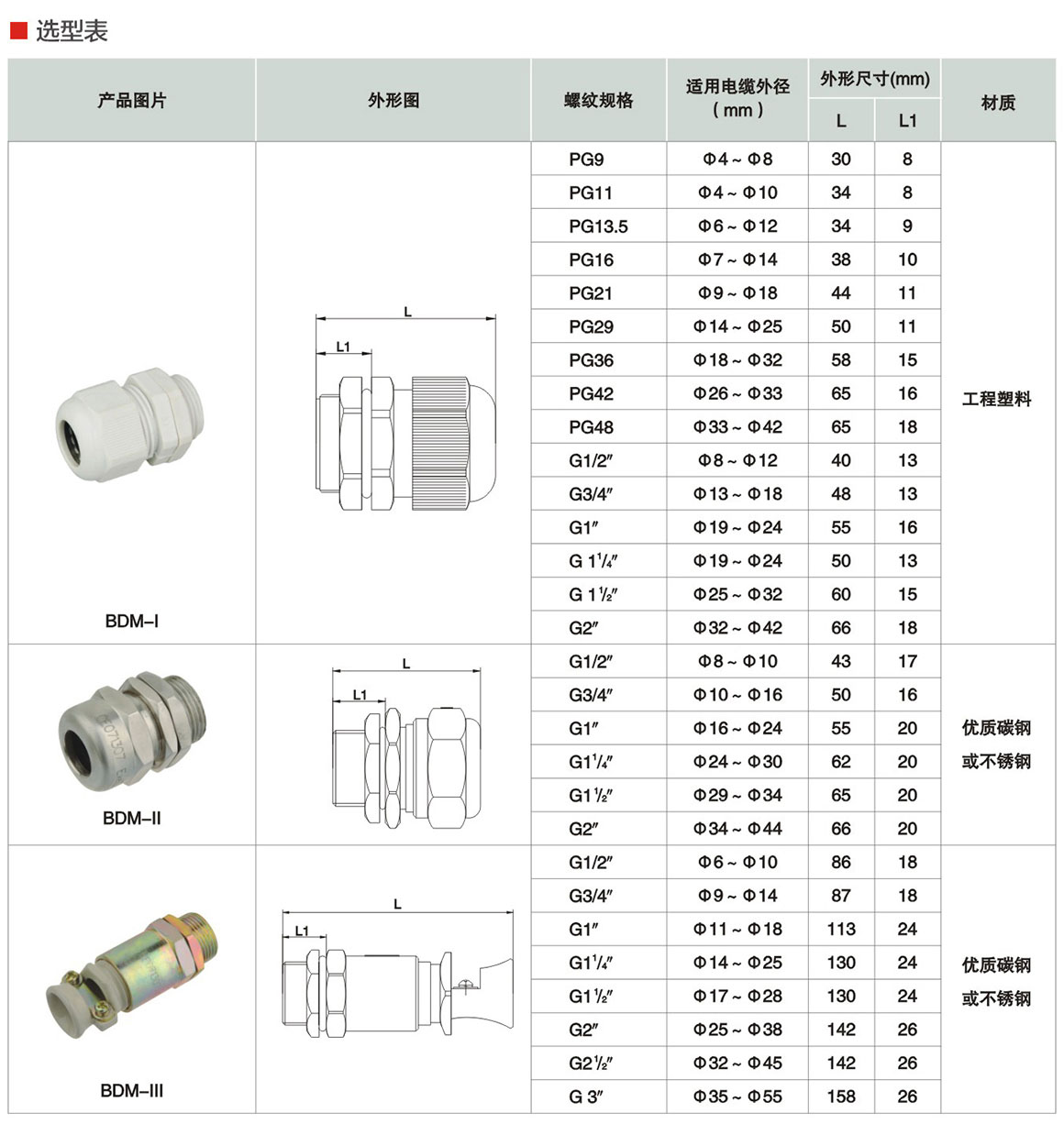 BDM系列电缆夹紧密封接头(dⅡ、e)